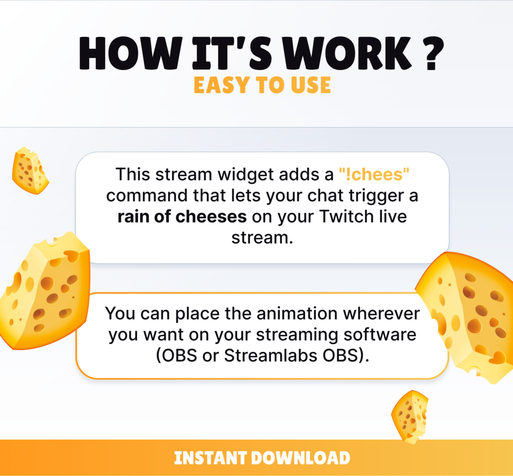 STREAM COMMAND WIDGET - Cheese - Chat Command for Twitch and Youtube // Instant Download