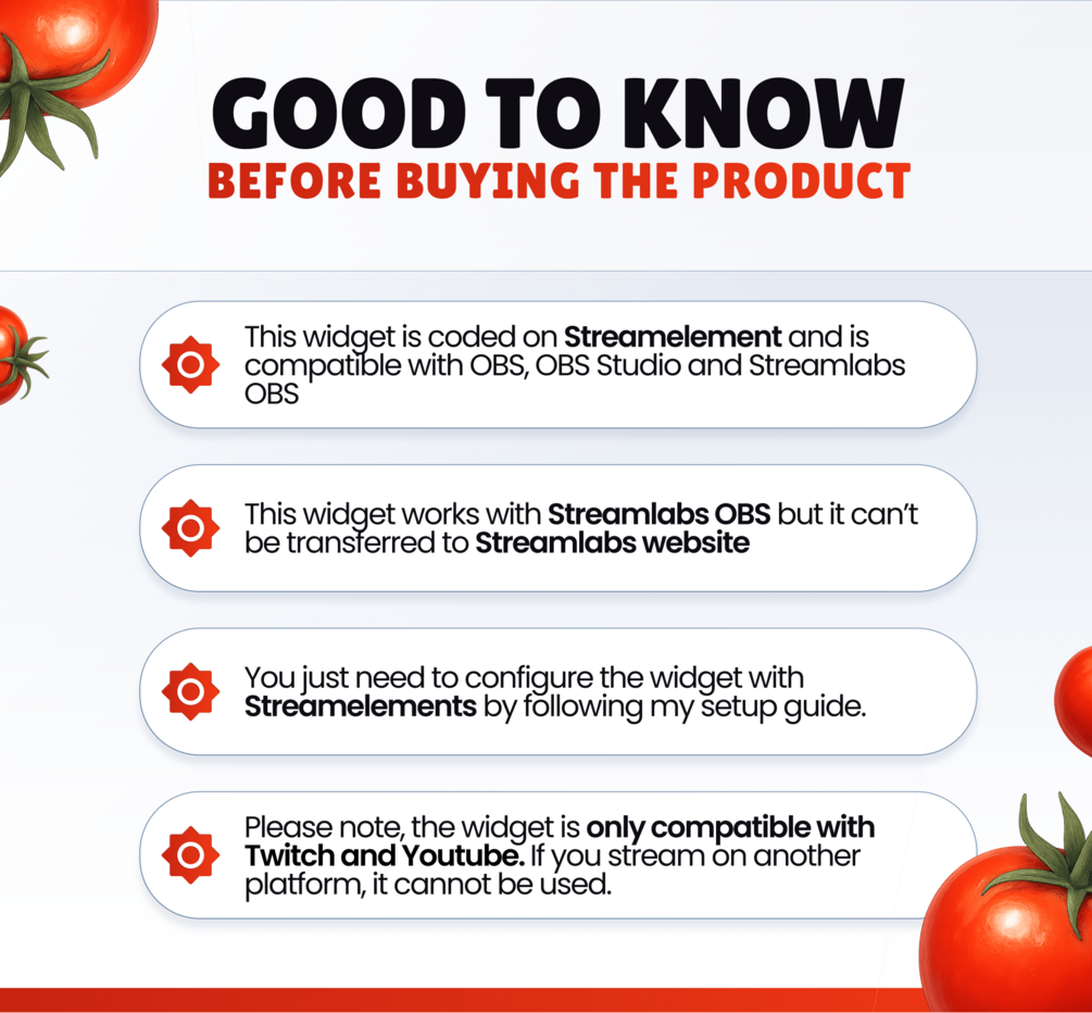 This widget works under Streamelements and can be transferred to your OBS/Streamlabs scene. It doesn't require any coding skill to be set up, a setup guide is included in the product :)