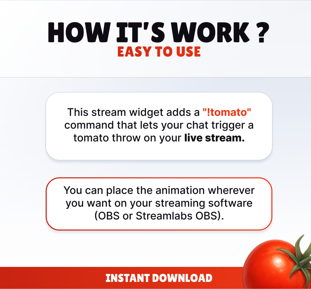 STREAM COMMAND WIDGET - Tomato - Chat Command for Twitch and Youtube // Instant Download