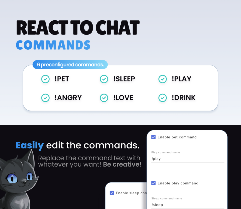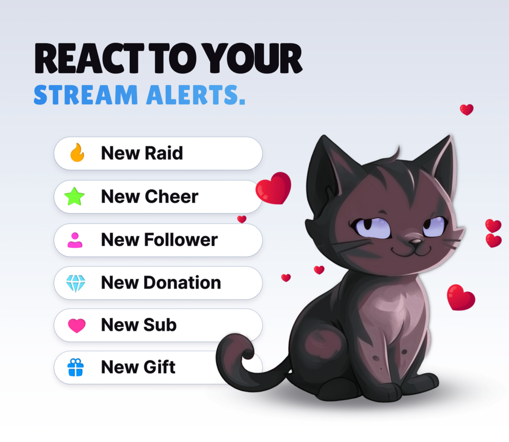 REACTIVE STREAM PET - Black Cat - Twitch Widget - Hd Files - Instant download - Setup with StreamElements // Compatible with Obs