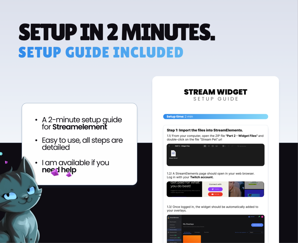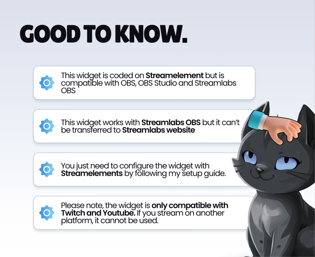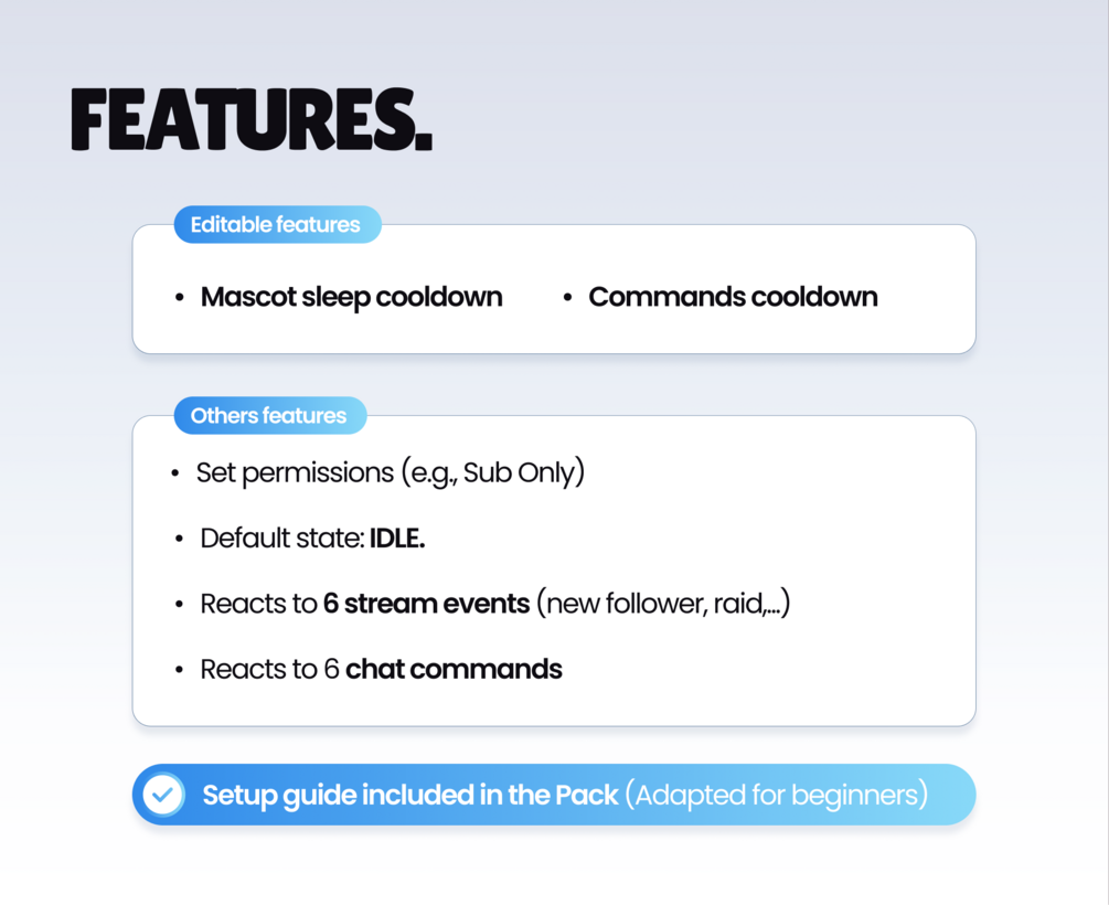 This mascot works under Streamelements and can be transferred to your OBS/Streamlabs scene. It doesn't require any coding skill to be set up, a setup guide is included in the product :)