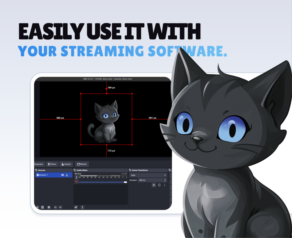 Adopt this cute black cat to decorate your streams. You can use it as a pet for your Vtuber or as a decoration for your Overlays !