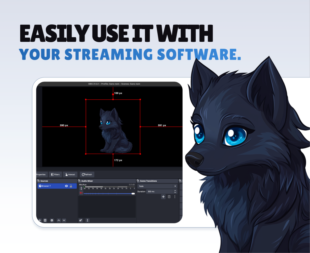 Adopt this cute dark wolf to decorate your streams. You can use it as a pet for your Vtuber or as a decoration for your Overlays !