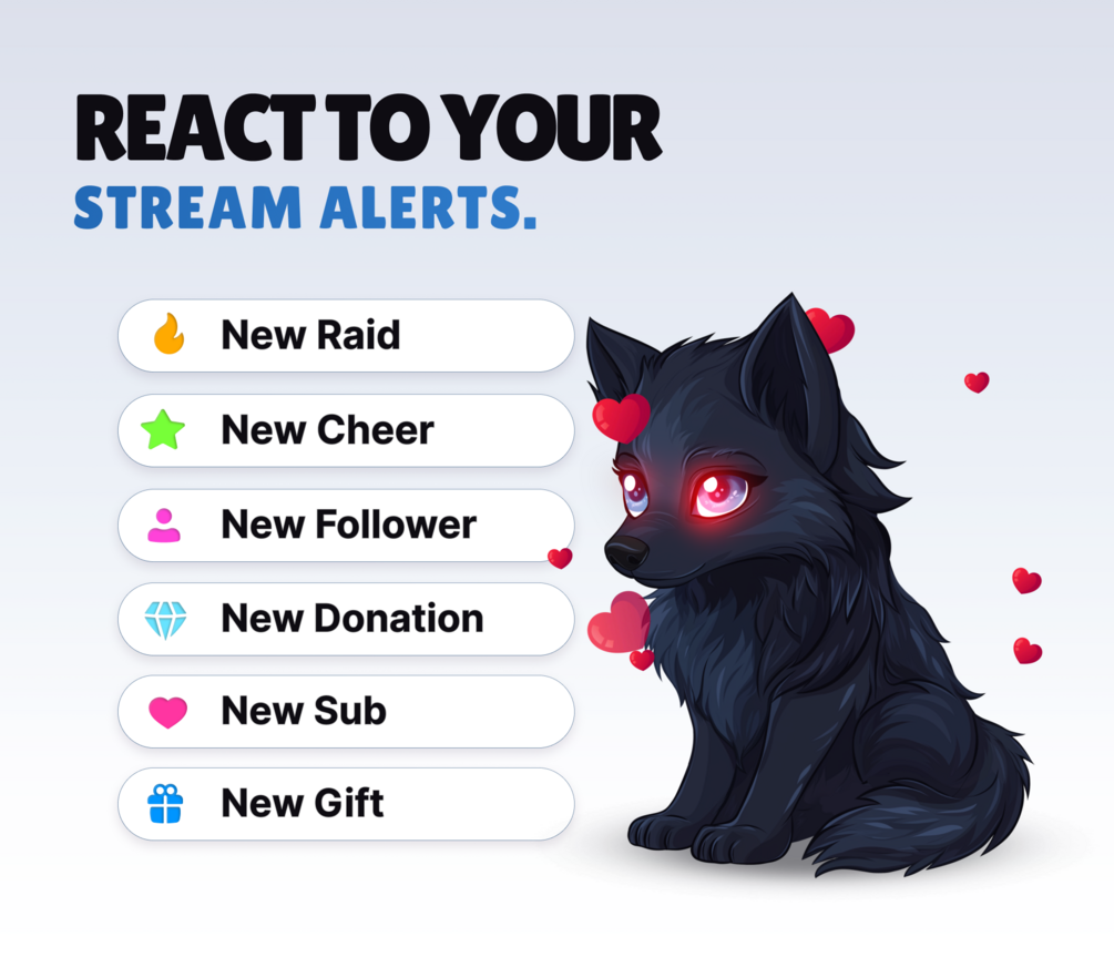 REACTIVE STREAM PET - Dark Wolf - Twitch Widget - Hd Files - Instant download - Setup with StreamElements // Compatible with Obs