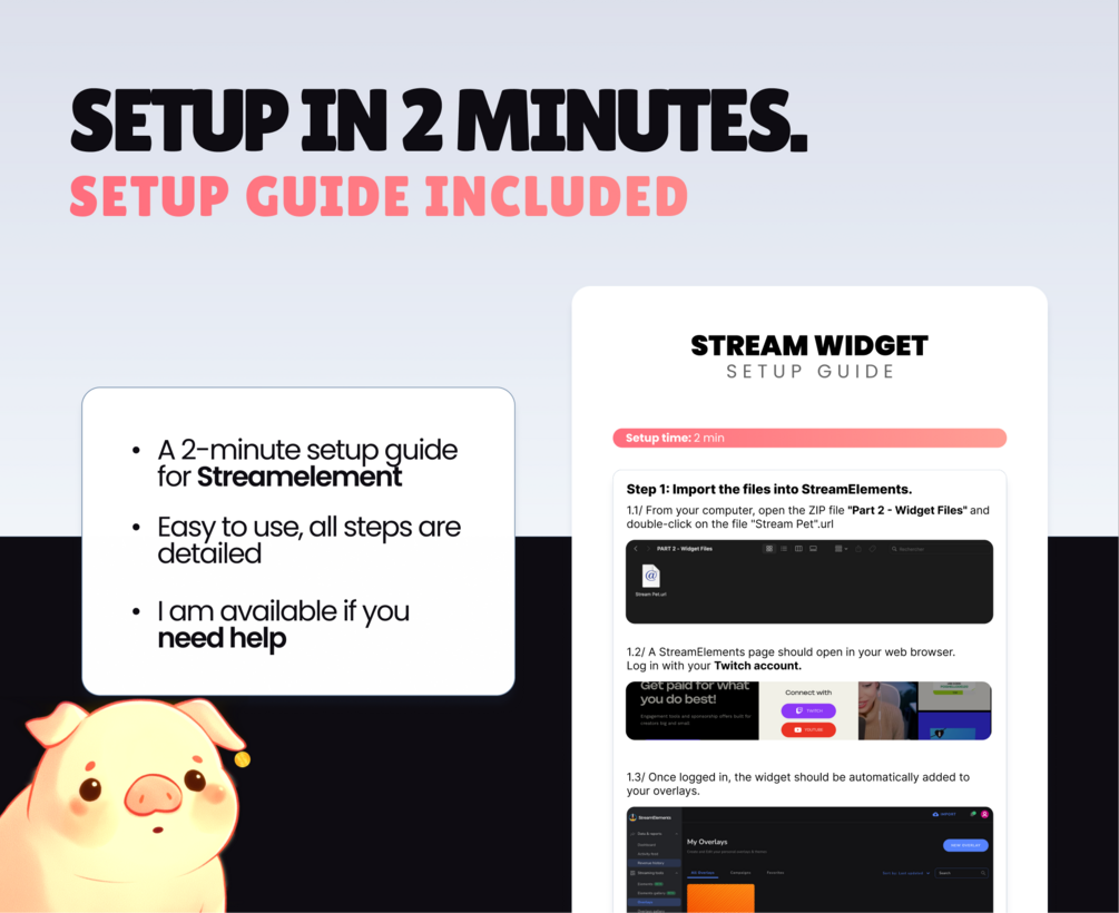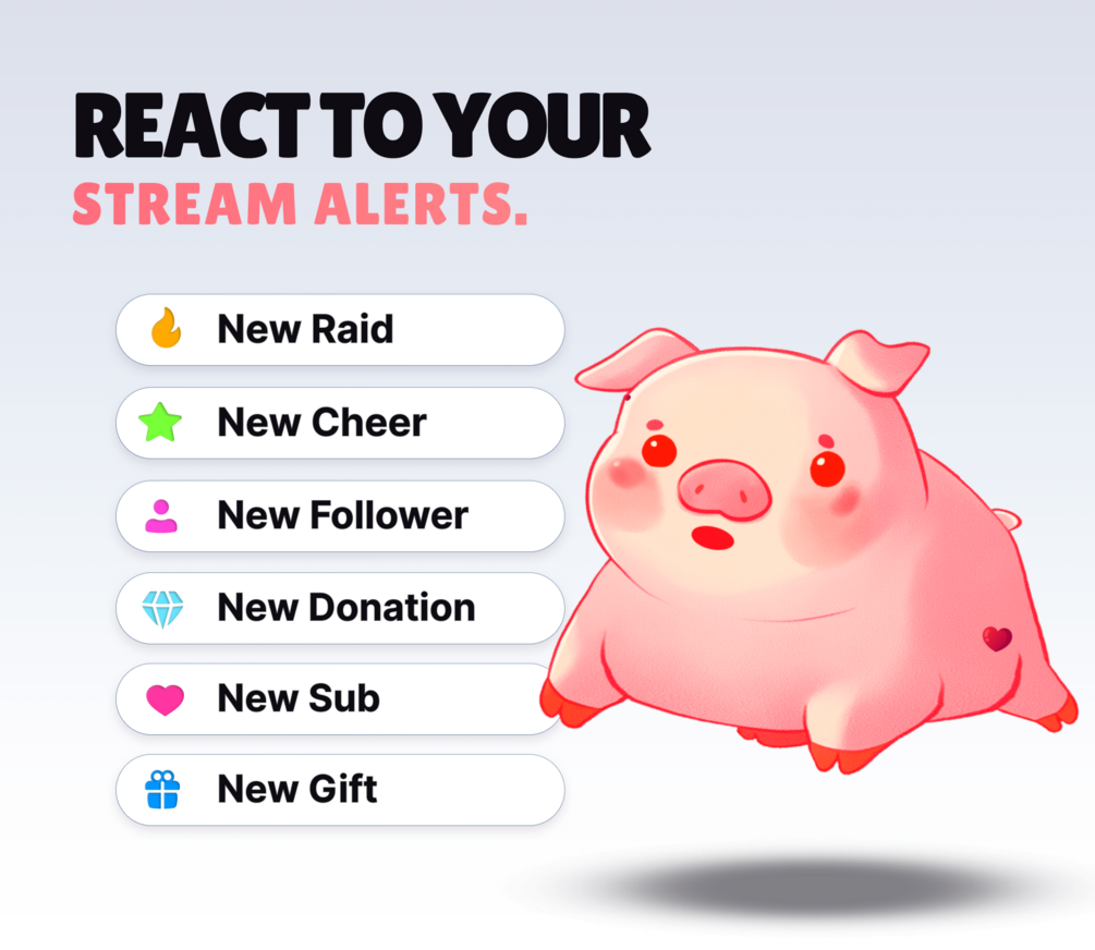 REACTIVE STREAM PET - Pig - Twitch Widget - Hd Files - Instant download - Setup with StreamElements // Compatible with Obs