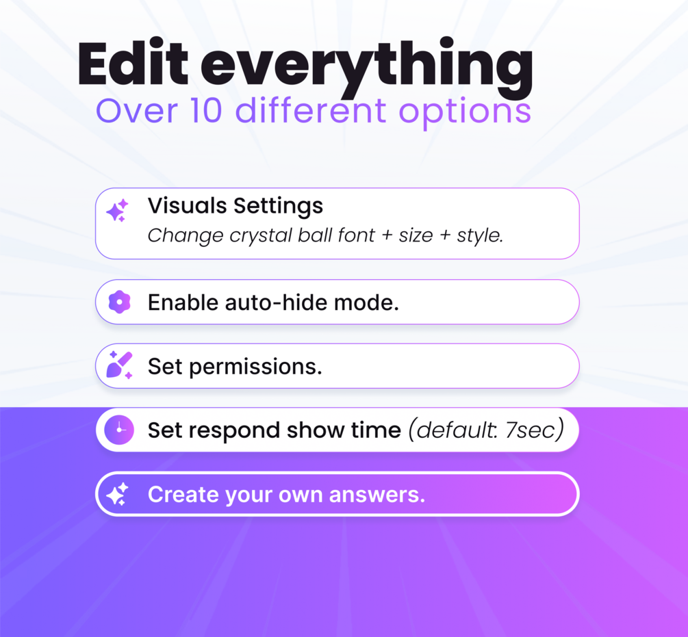 🎉 With this Stream widget, you can use the !ask command followed by a question, and the crystal ball will give you a random answer. It’s fun and interactive — I’m sure your viewers will love asking the silliest possible questions.