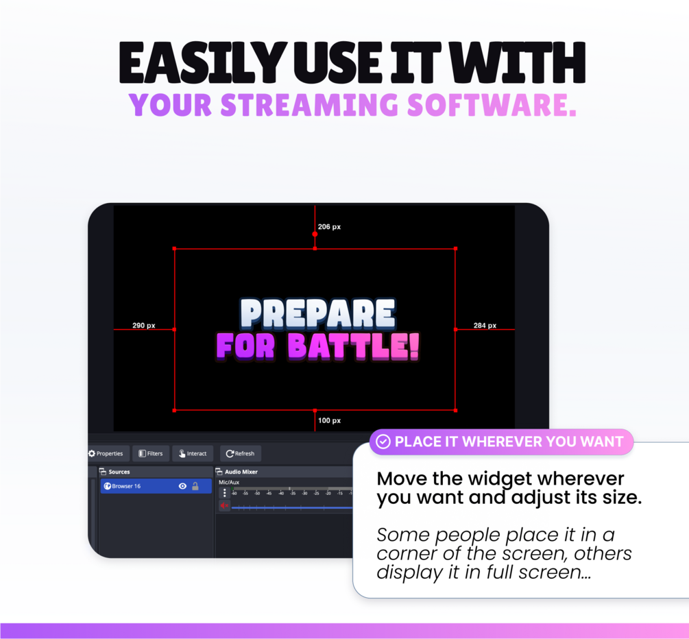 This widget works under Streamelements and can be transferred to your OBS/Streamlabs scene. It doesn't require any coding skill to be set up, a setup guide is included in the product :)