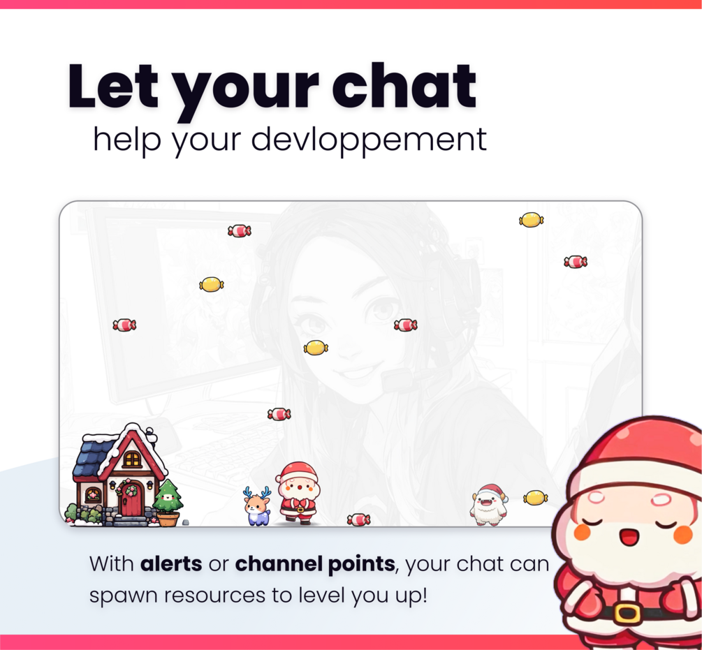 🔔Your chat can trigger alerts or use channel points to spawn rare resource rains, helping you level up much faster. Check out the third guide to learn how to set up these features.