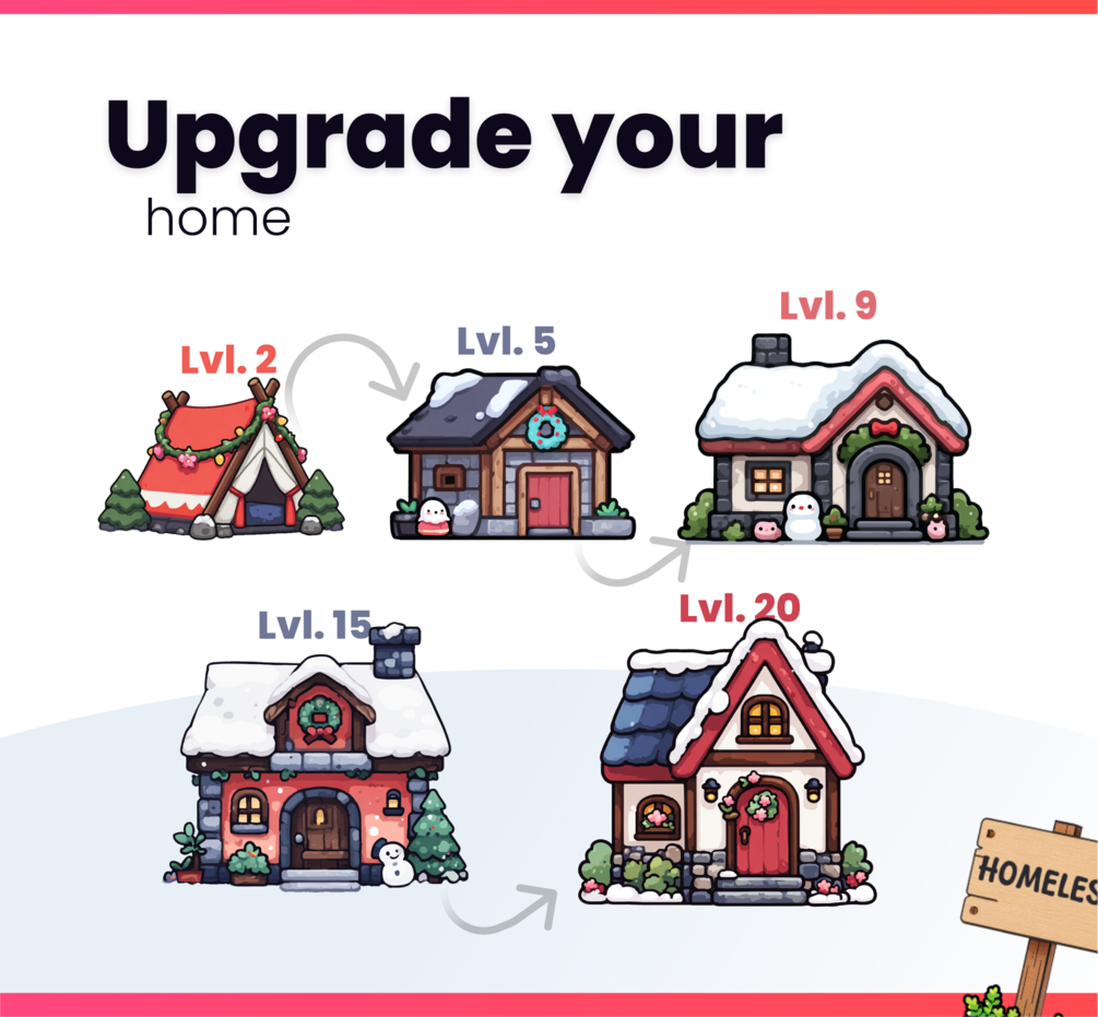 ⬆As you level up, your house will start to grow and upgrade. You'll also unlock tons of decorations and adorable familiars that will join you, wandering around your village.